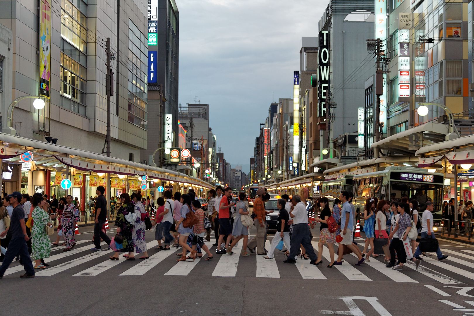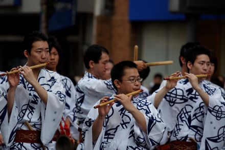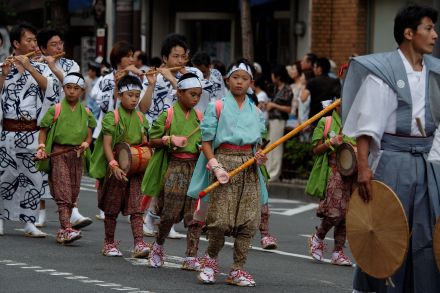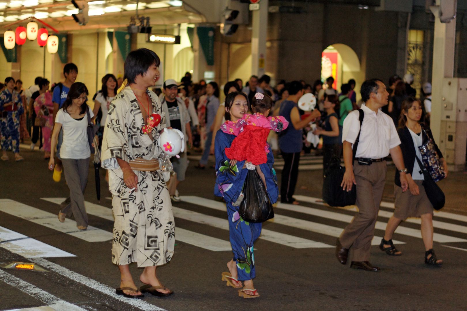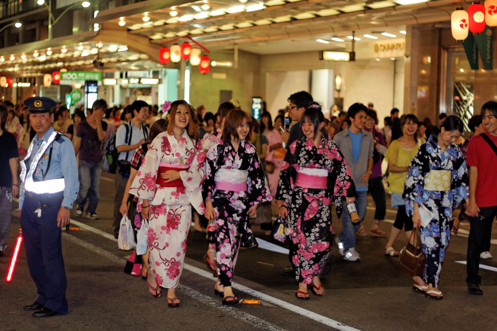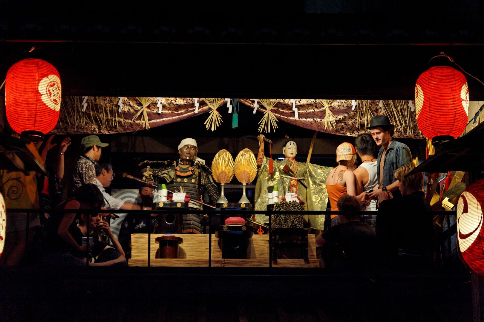 La circulation est bloquée les 3 soirs de veille de la grande parade du festival de Gion: c'est le Yoiyama. L'avenue Shijo et toutes les principales rues du quartier de Gion sont livrées aux habitants de Kyoto qui prennent progressivement possession de la ville.