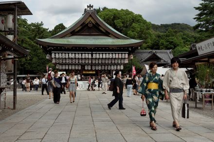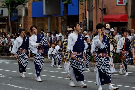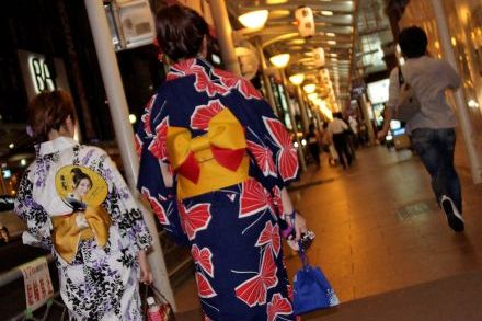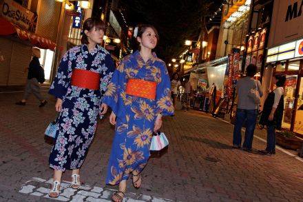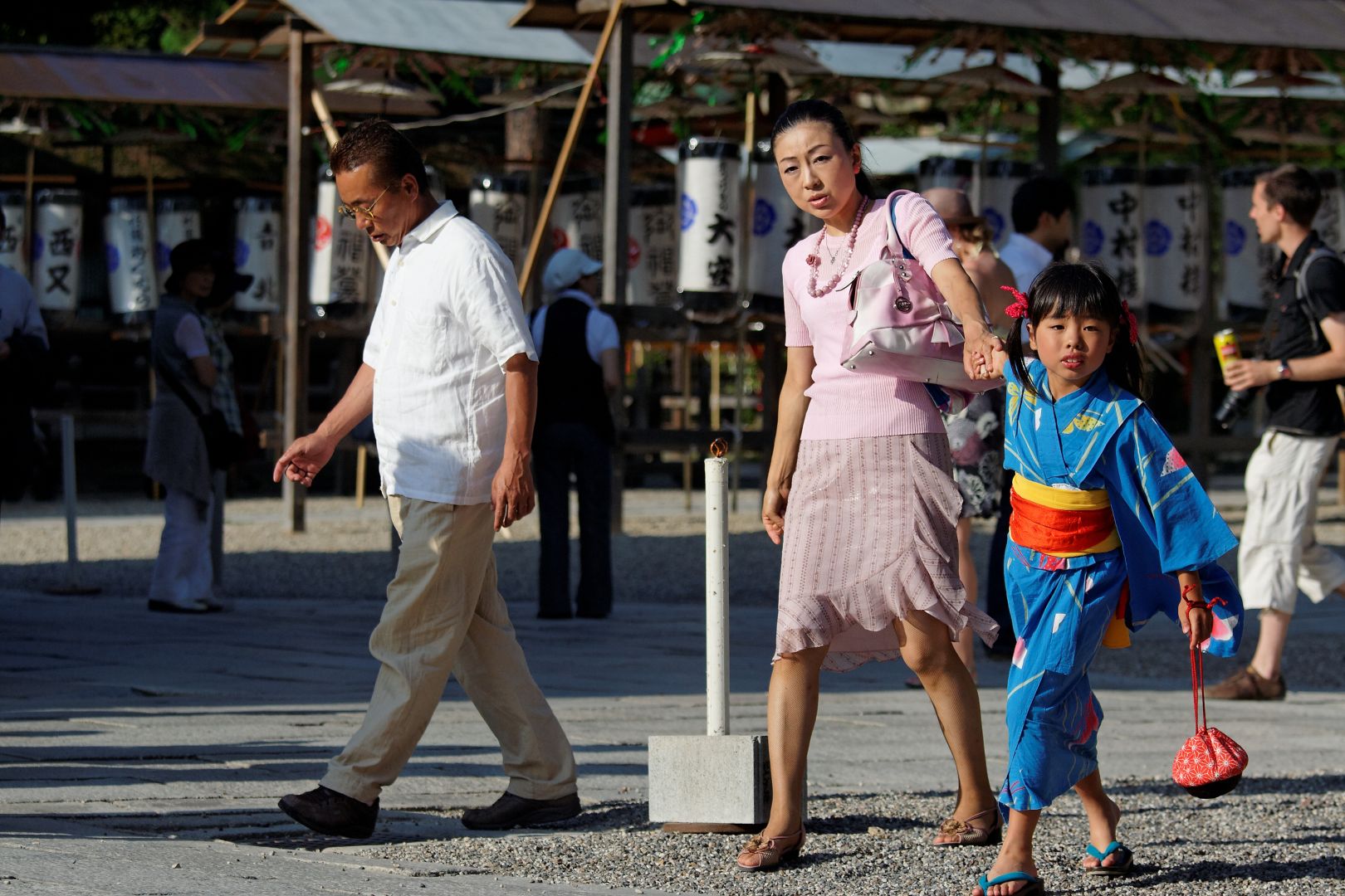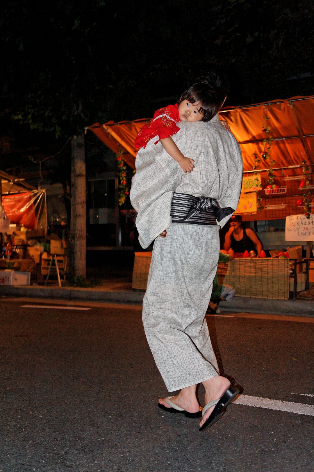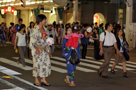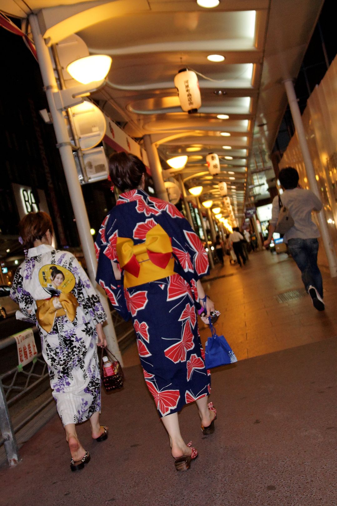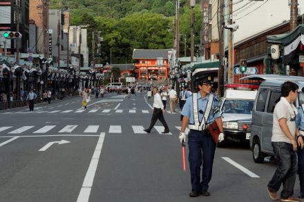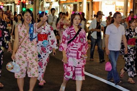 La circulation est bloquée les 3 soirs de veille de la grande parade du festival de Gion: c'est le Yoiyama. L'avenue Shijo et toutes les principales rues du quartier de Gion sont livrées aux habitants de Kyoto qui prennent progressivement possession de la ville.