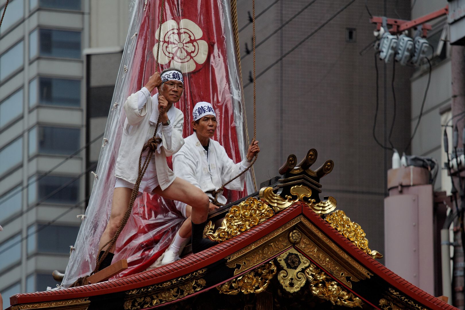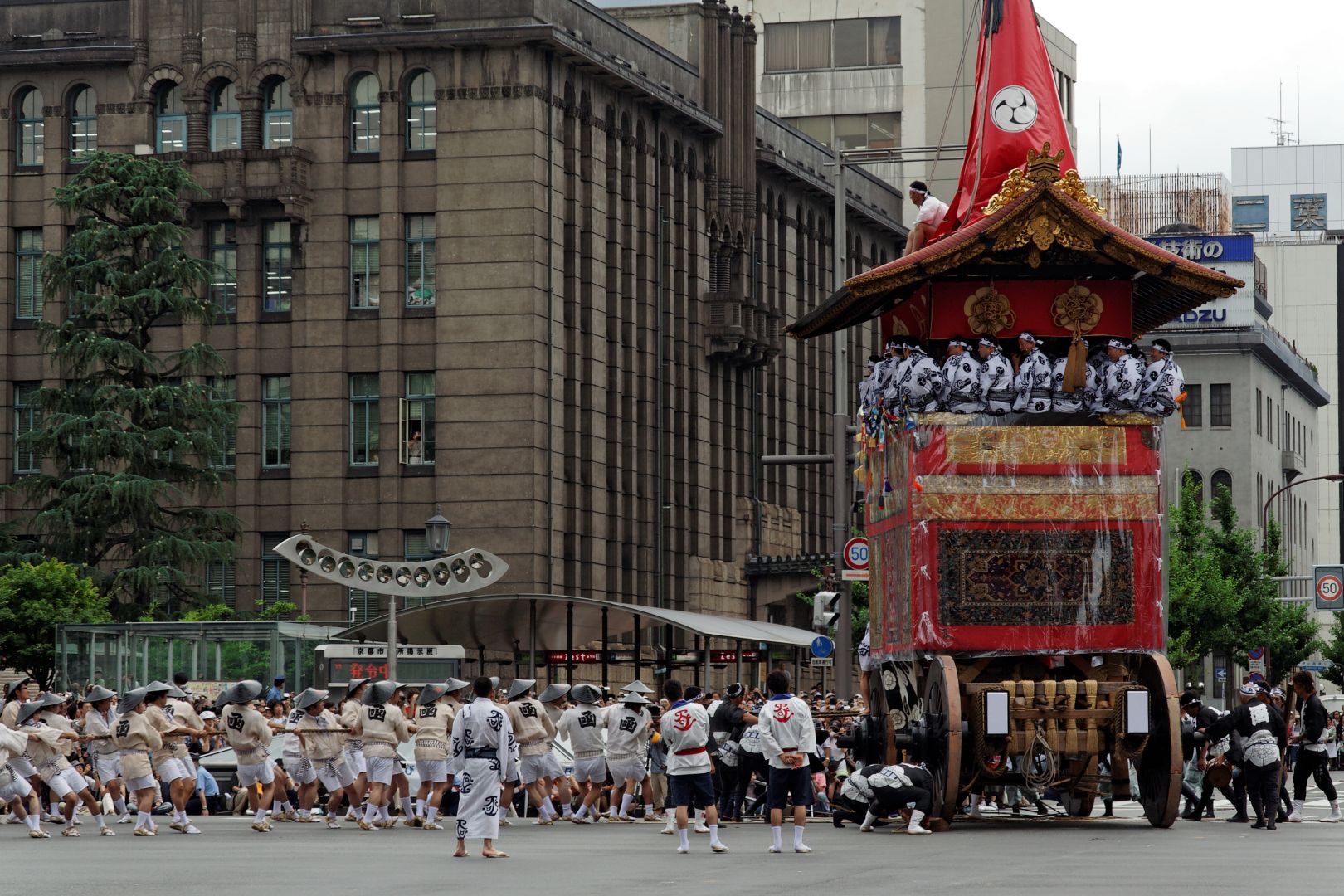 Le départ est à l'angle de l'avenue Shijo et de la rue Karasuma. Le cortège remonte ensuite la rue Kawaramachi où je suis installé, juste avant le virage dans l'avenue Oike, au niveau du Kyoto City Hall. Le soir, les dieux défilent une dernière fois, toujours avec une grande ferveur, avant d'être raccompagnés dans leurs sanctuaires respectifs. Jusqu'à l'année suivante !