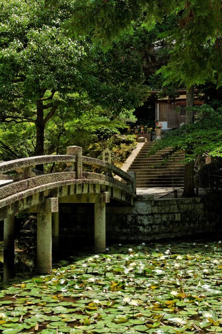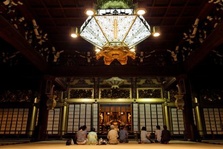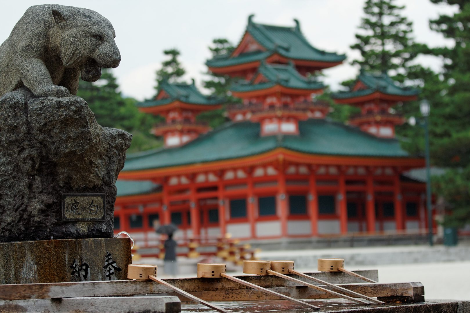 Kyoto dans ce qu'elle a de plus traditionnel, ses innombrables temples et sanctuaires, étroitement imbriqués au cœur de la ville.