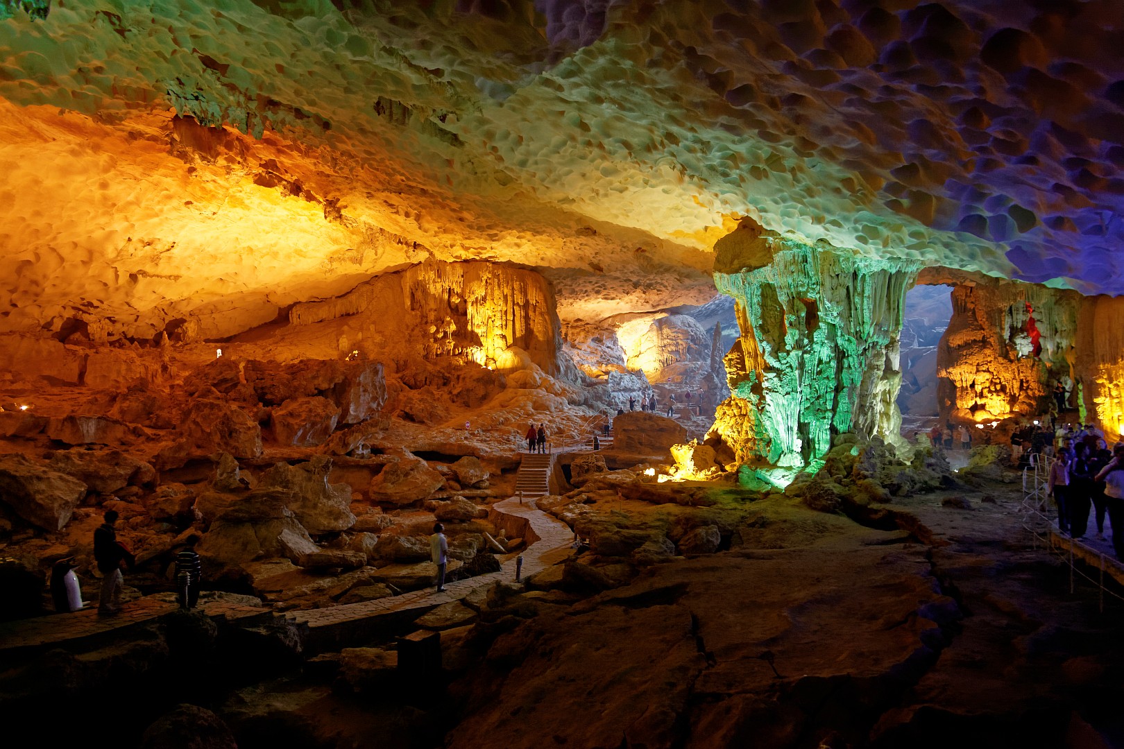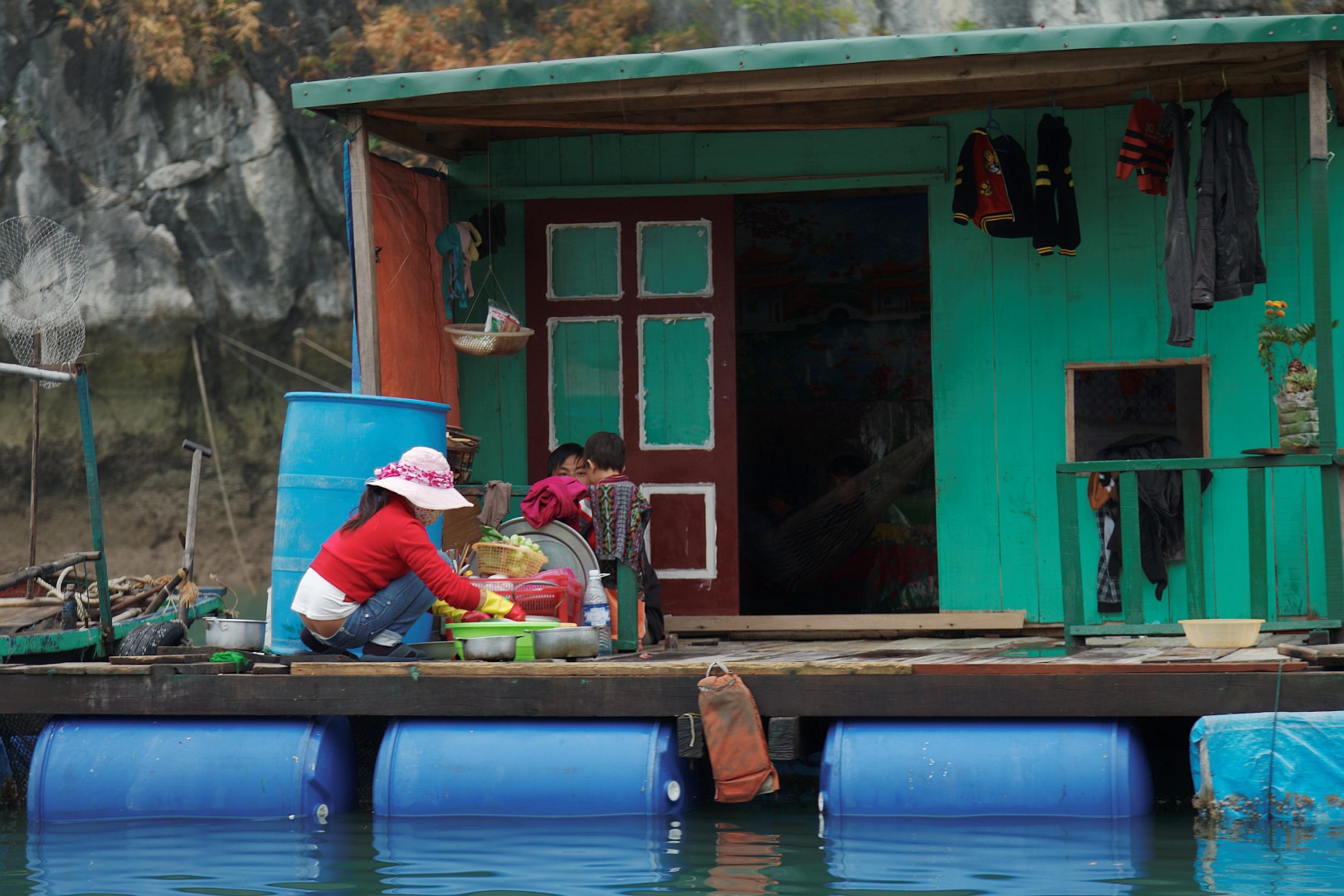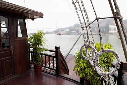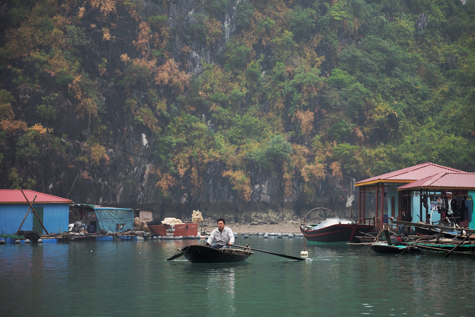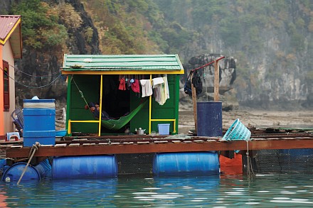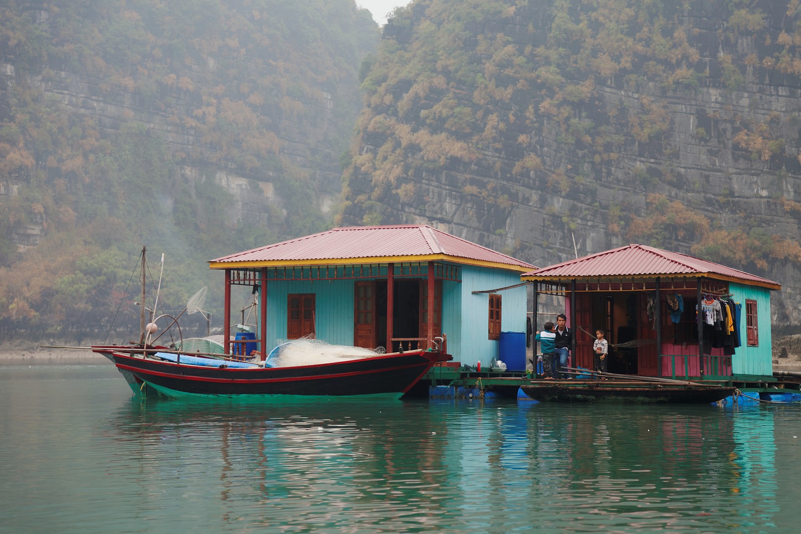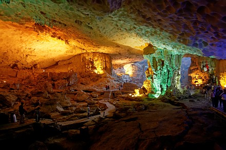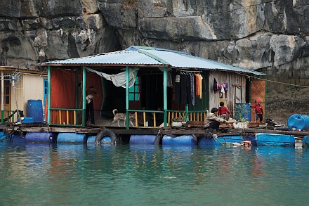 23 décembre 2010. La baie d'Halong est constituée d'environ 3000 îlots rocheux qui se dressent au milieu de la mer et des brumes. De grandes jonques luxueuses sillonnent la baie pour le plus grand plaisir des touristes. La navigation s'accompagne d'une promenade en barque à travers un village de pêcheurs et de la visite de la grotte Hang Sung Sot, dite grotte des surprises.