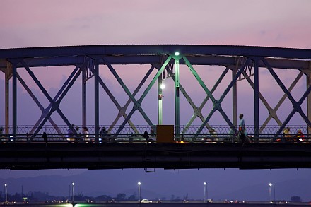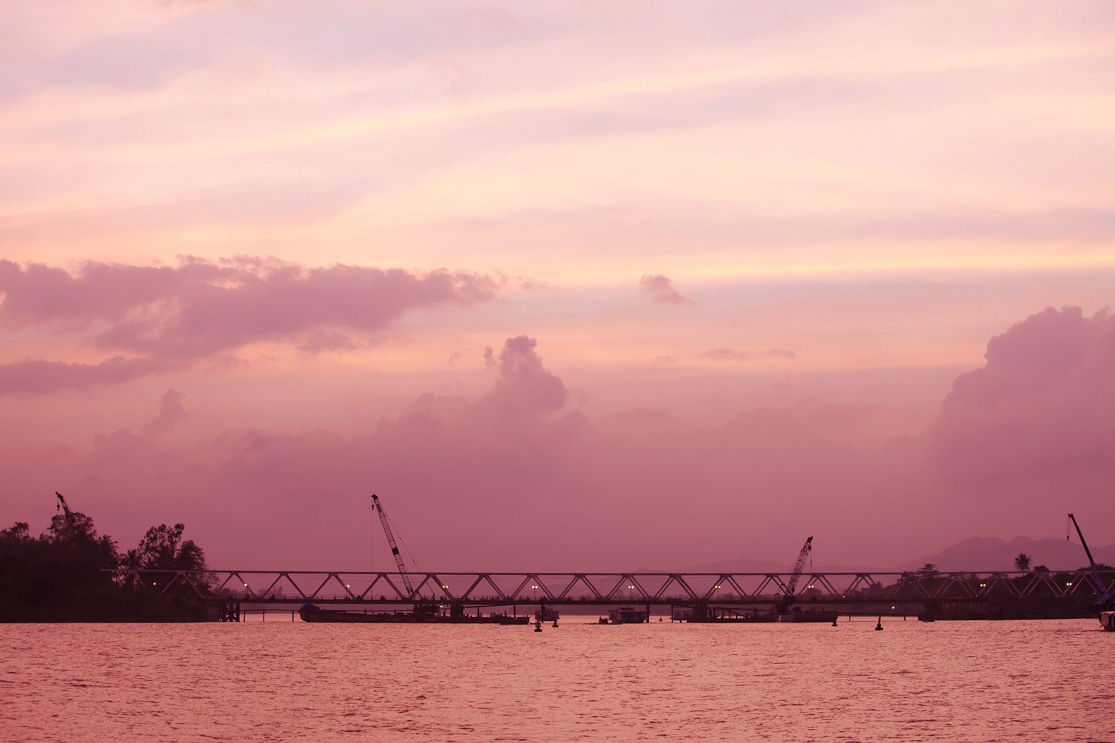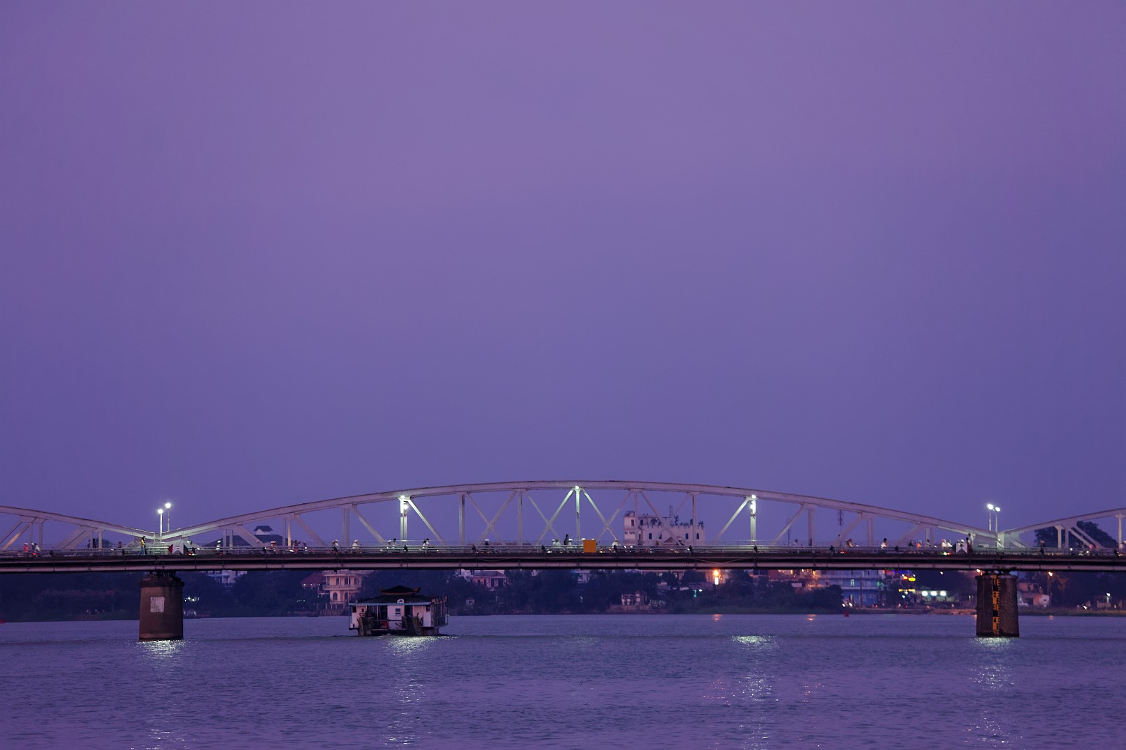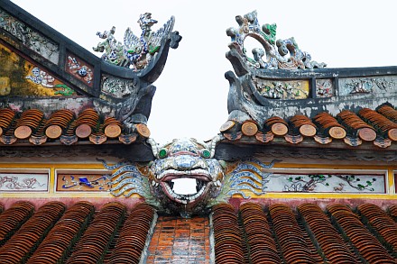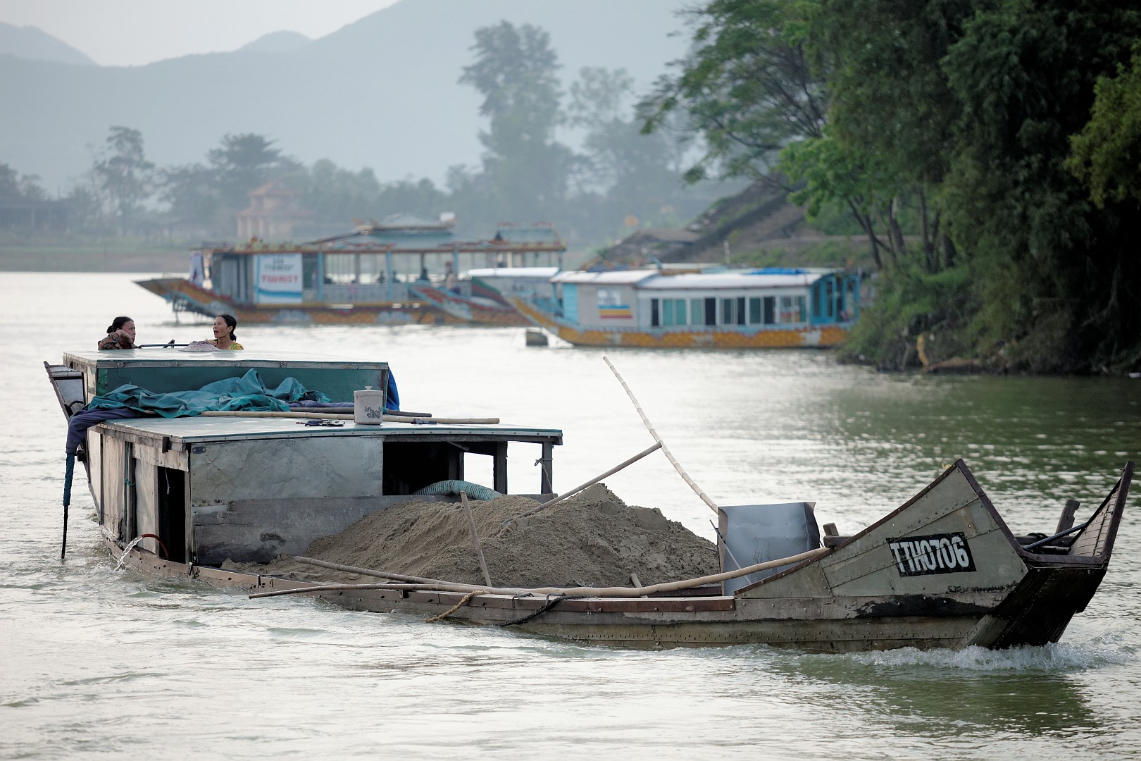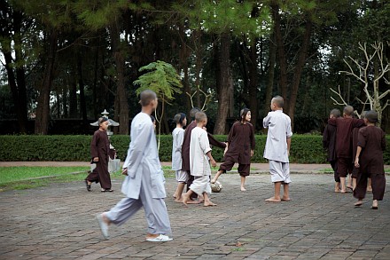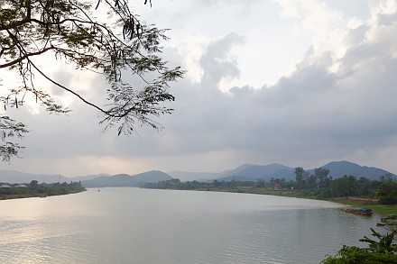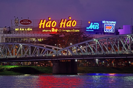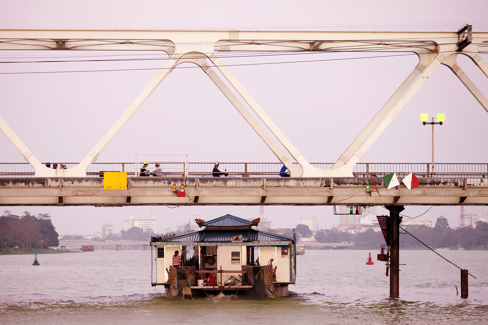 25 décembre 2010. Hué, ancienne cité impériale, s'étend paresseusement le long de la Rivière des Parfums. L'après-midi commence par la visite de la pagode de Thiên Mu, puis par une croisière sur la Rivière des Parfums. Nous découvrons ainsi le pont Trang Tien, anciennement Clémenceau, à la tombée du jour. La soirée se poursuit par un dîner en costume traditionnel de la cour de l'empereur Nguyen. Le lendemain, pluie. Cela ne nous arrête pas pour visiter les tombeaux de Minh Mang, de Tu Duc et la cité impériale. Construite de 1804 à 1833 sur l’initiative de Gia Long, le fondateur de la dynastie des Nguyen, sur un périmètre de 10 km, elle s’inspire de l’architecture des palais impériaux chinois.