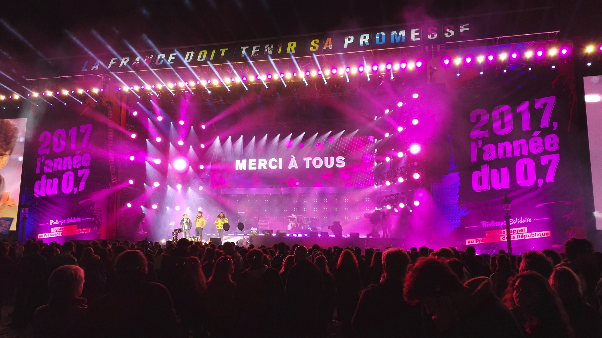 Ce meeting-concert du 17 septembre 2017 réunit de nombreux artistes français et étrangers sur la place de la Concorde à Paris. Il est organisé pour rappeler au président sa promesse... et qu'elle soit tenue avec 0,7% dès 2017 !