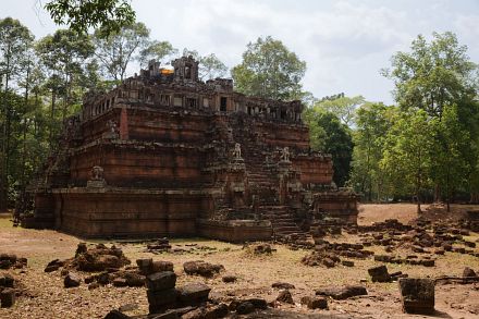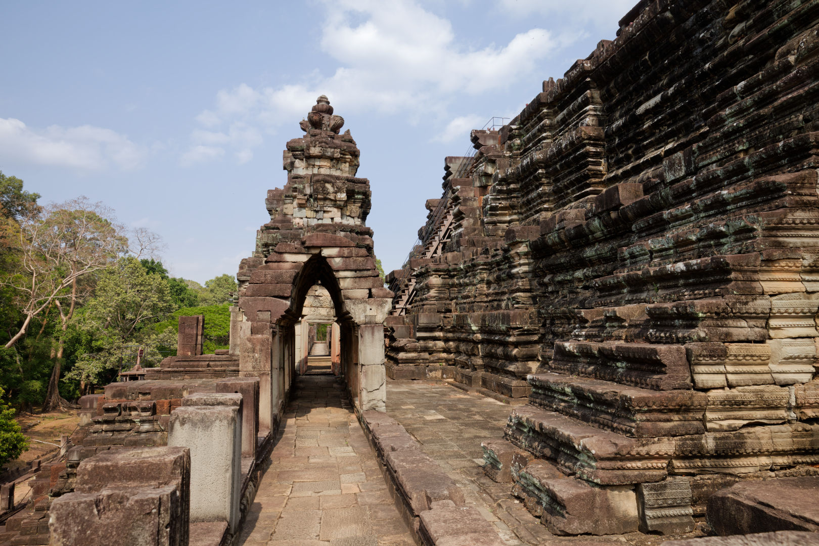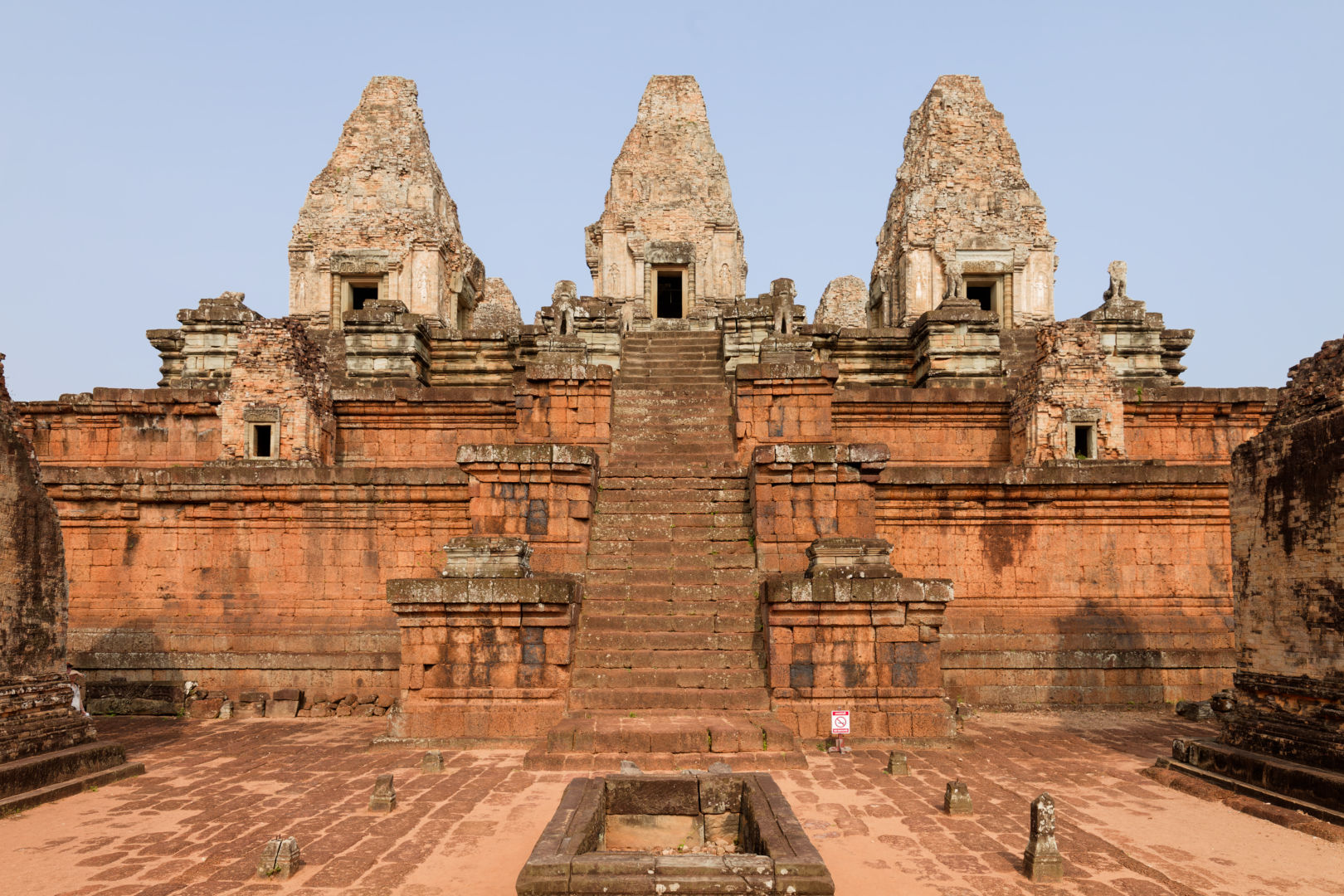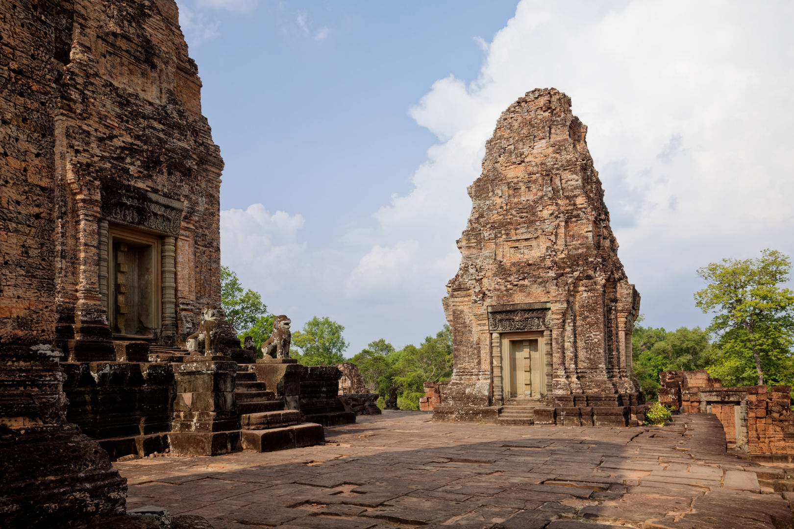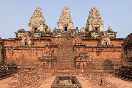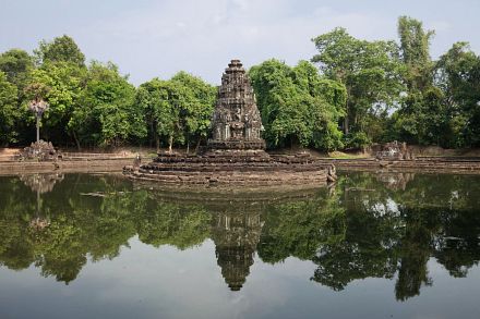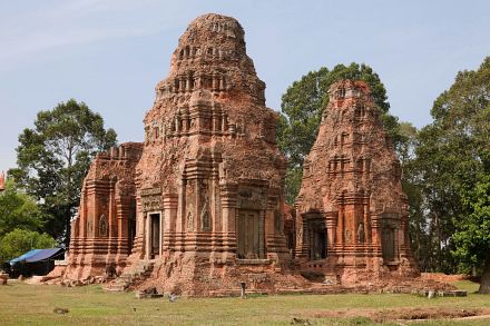 L'empire khmer a été fondé au début du IXème siècle par Jayavarman II. La prospérité de la région d'Angkor naît de colossaux travaux d'aménagements hydrauliques qui se sont poursuivis les Xème et XIème siècles. Le Preah Kô, construit en brique comme tous les monuments antérieurs et consacré en 879, est le plus ancien temple encore visible. Le Bakong, en pierre et consacré en 881, inaugure la structure de temple-montagne évoquant le mont Meru de la mythologie hindoue. Pendant les 3 siècles de son apogée, l'empire khmer a alterné hindouisme et bouddhisme comme religion officielle. Angkor est définitivement abandonnée comme capitale vers 1431, après sa prise par les Thaïs du royaume d'Ayutthaya. Après une période de déclin aggravé par des moussons irrégulières, le pouvoir se déplace progressivement vers le sud, à partir du XVIème siècle.
