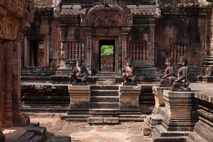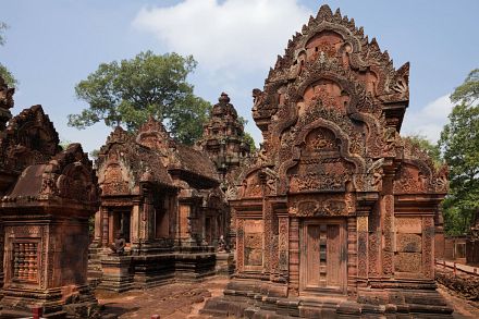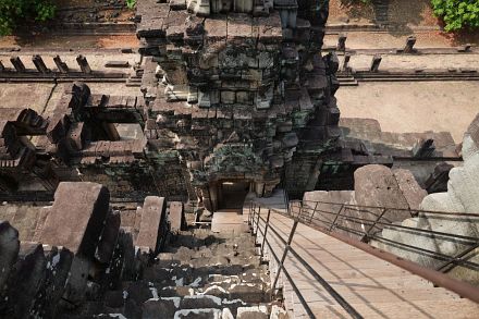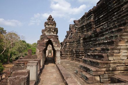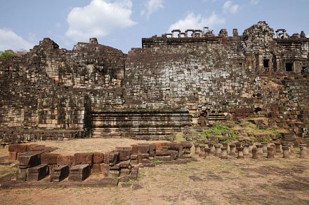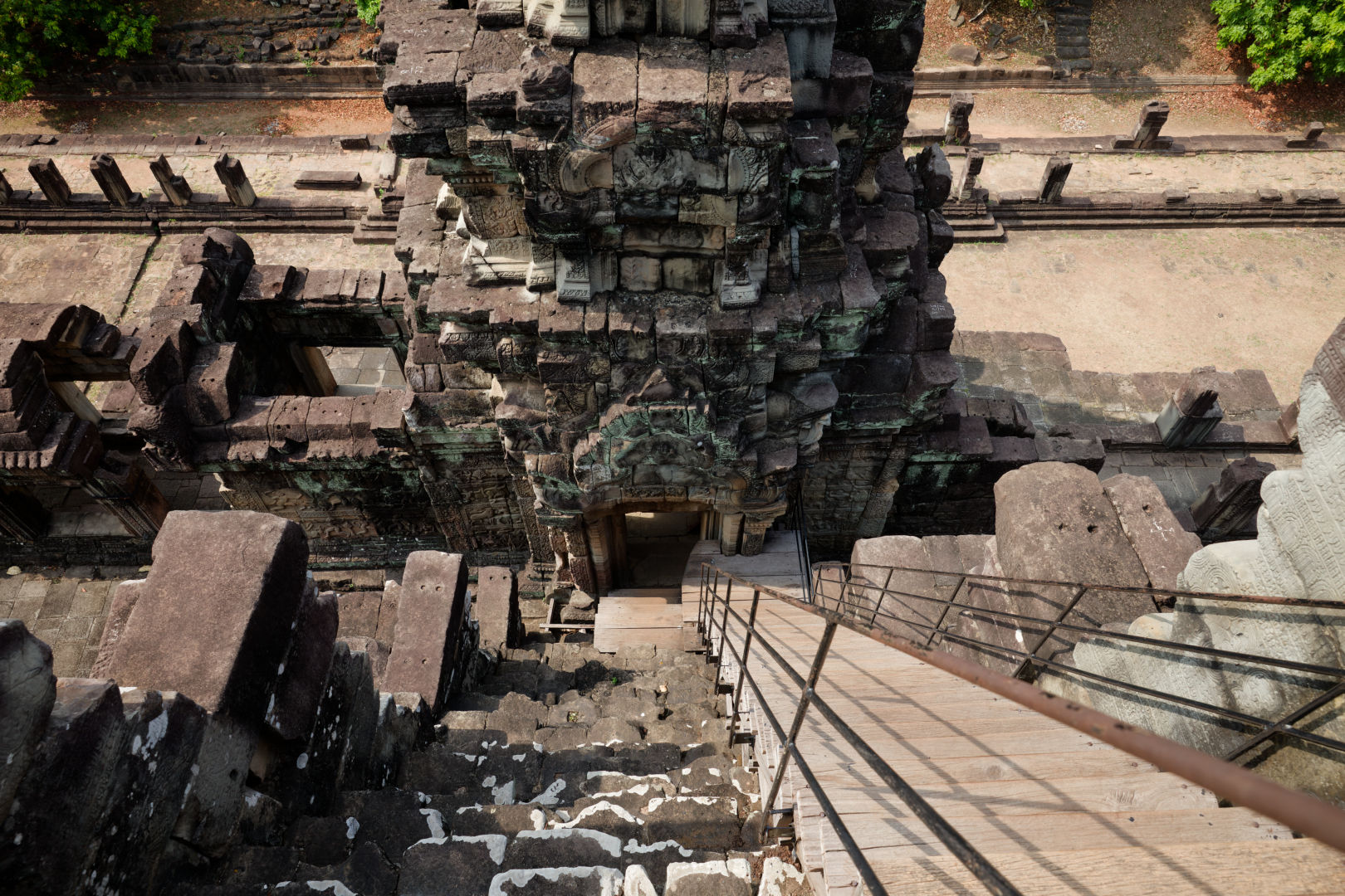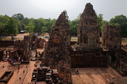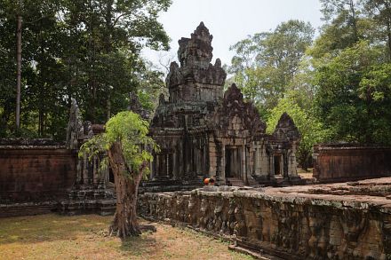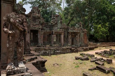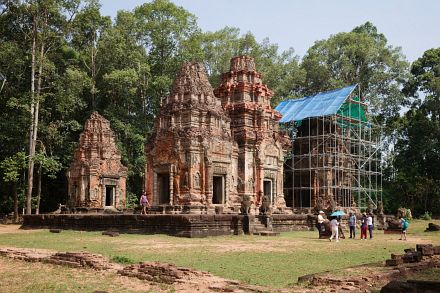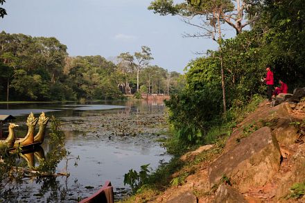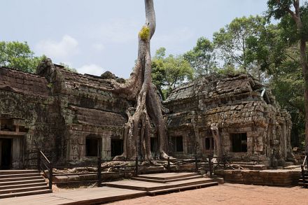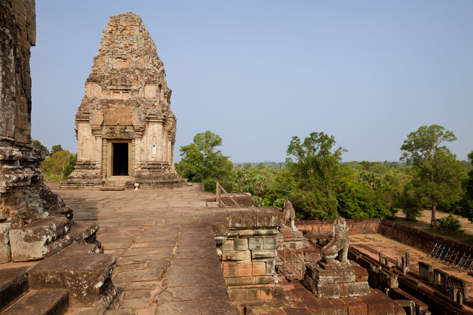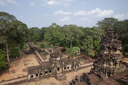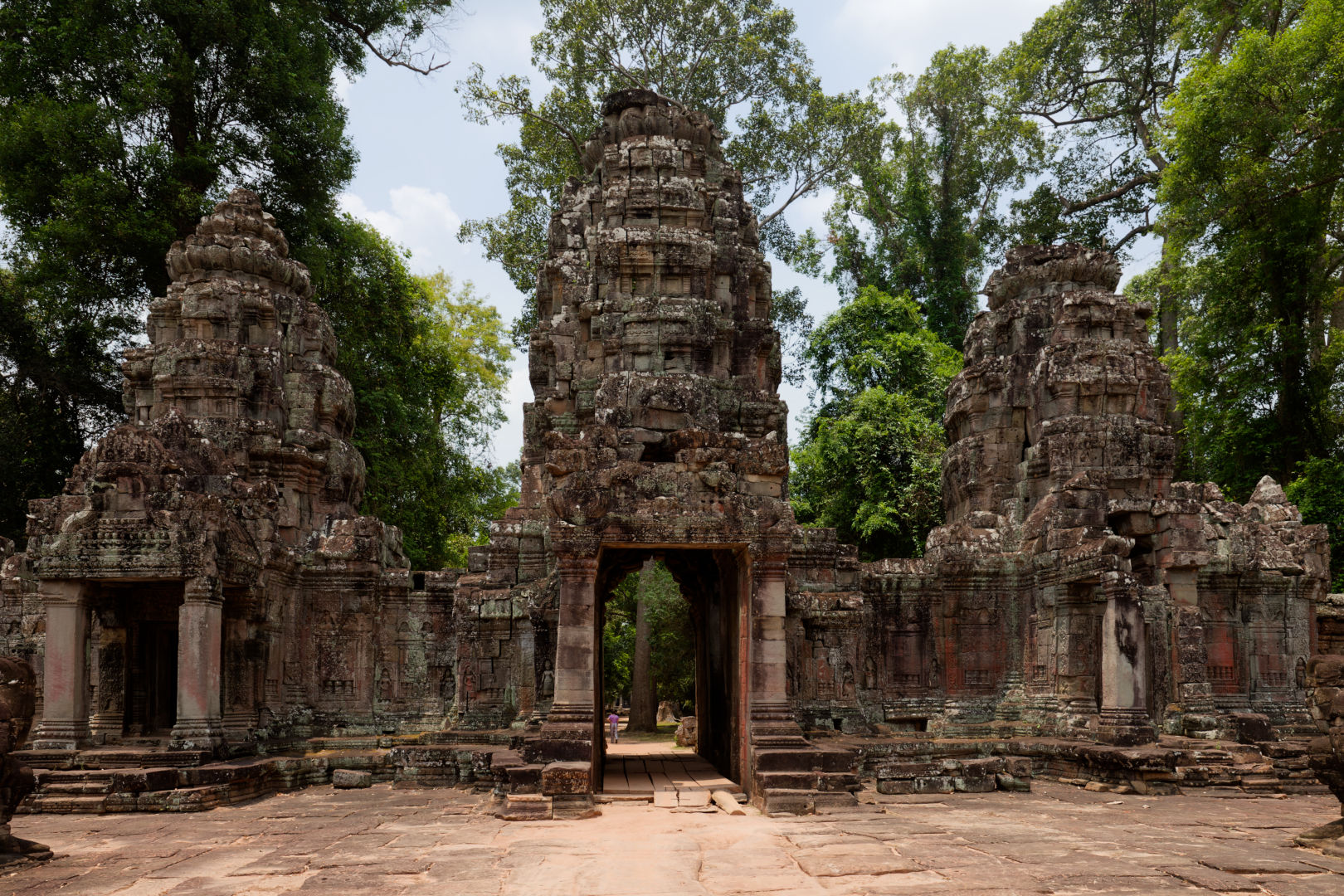 L'empire khmer a été fondé au début du IXème siècle par Jayavarman II. La prospérité de la région d'Angkor naît de colossaux travaux d'aménagements hydrauliques qui se sont poursuivis les Xème et XIème siècles. Le Preah Kô, construit en brique comme tous les monuments antérieurs et consacré en 879, est le plus ancien temple encore visible. Le Bakong, en pierre et consacré en 881, inaugure la structure de temple-montagne évoquant le mont Meru de la mythologie hindoue. Pendant les 3 siècles de son apogée, l'empire khmer a alterné hindouisme et bouddhisme comme religion officielle. Angkor est définitivement abandonnée comme capitale vers 1431, après sa prise par les Thaïs du royaume d'Ayutthaya. Après une période de déclin aggravé par des moussons irrégulières, le pouvoir se déplace progressivement vers le sud, à partir du XVIème siècle.